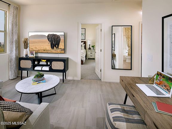 Spacious 4-bed, 3-bath home with a versatile teen room--ideal for homework, gaming, or relaxing. Features Umber cabinets, white/gray granite countertops, light beige tile floors, and neutral carpet from our Charm package. Located under 10 minutes from I-10 for easy access to downtown Tucson and major employers. Community amenities include walking/bike trails and playgrounds. Move-in ready with washer, dryer, fridge, and whole-home blinds. Built with energy-efficient features for savings, comfort, and peace of mind.