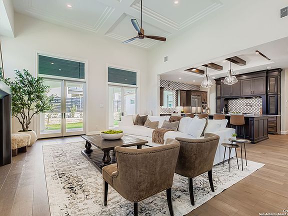 In The Bluff at The Dominion, McNair Custom Homes presents an elegant retreat that embodies refined luxury without ostentation. This single story residence with an open floor plan redefines sophisticated Texas living in The Dominion's most coveted new enclave. The thoughtful design features four bedrooms, each functioning as a private sanctuary with its own bathroom and walk-in closet - eliminating shared bathroom scheduling entirely. The fourth bedroom offers versatility as an ideal study or home office space, adapting to your lifestyle needs. The primary suite stands apart with dual walk-in closets and a spa-inspired bathroom of generous proportions. For practical living, the utility room provides ample space, even accommodating an additional refrigerator if desired. Hardwood and tile flooring throughout ensures both aesthetic appeal and a low-allergen environment. The three car garage (two side entry bays and one rear entry) offers abundant space for vehicles and recreational pursuits, while tankless water heaters deliver on-demand comfort. Step outside to discover an entertainer's dream - a substantial patio paired with a fully-equipped outdoor kitchen, perfect for enjoying the Texas evenings. This residence transcends being merely another premium Dominion property - it represents a philosophy where contemporary luxury feels both expansive and effortlessly livable. Here, home becomes more than a location; it becomes an experience of exceptional daily living.