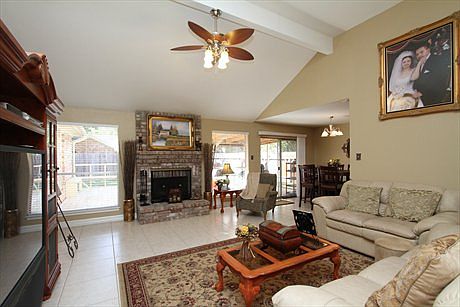 Charming 1story home, 4sides brick, updated & very clean! Spacious living room with vaulted ceiling, fireplace, ceiling fan & a wall of windows! Ceramic tile floors in the entry, living, kitchen/dining area & all baths! Master with high ceiling, dual vanities & HIS/HERS closets! 2inch blinds throughout! Recent paint inside & out! Oversized covered patio with deck, perfect for grilling or relaxing! Very nice shed to STAY! NEW ROOF 2010*Air ducts replaced*New garage door*READY FOR MOVEIN!!!