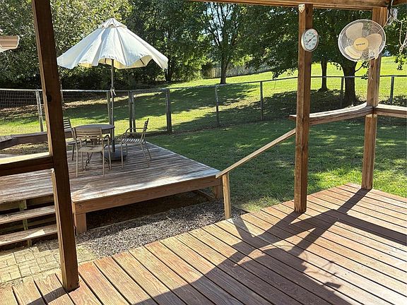 Partially fenced yardCovered front porchExtra-large detached garageSplit-bedroom floor planLarge primary suiteWalk-in closetPrivate bath