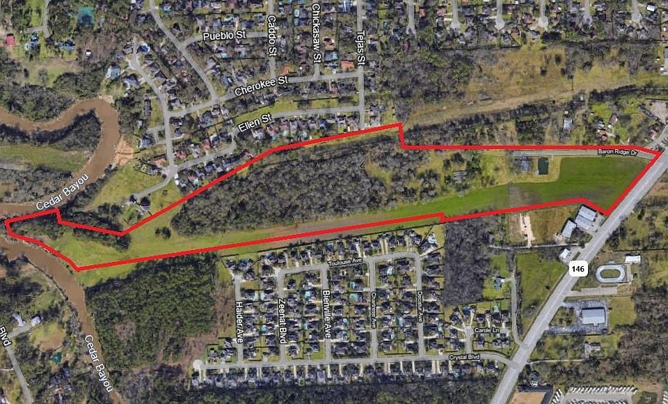 - 36.2 acres of land zoned for residential use located between the Pinehurst and Tanglewilde neighborhoods and just 2 miles South of I-10, near the recently developed Chambers Town Center and the future Chambers Commons development. City utilities are available and most of the property is outside of the special flood hazard area. Old survey, subdivision site plan, and environmental report available upon request. The property has excellent drainage, per the owner.