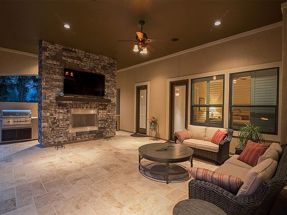 Private double Fairway views on Willow Creek Golf Course! This elegant home offers fantastic updates and fine detailing throughout. Travertine and hand-scraped wood flooring compliment high ceilings and amazing golf course views. Central vac system, plantation shutters, beautiful rope lighting and fixtures. Incredible mud and laundry spaces - must see to appreciate! First floor home theater offers multi-level set up so all are ensured the best seat in the house. High-end appliances, abundant storage and two working islands create the ideal chef's kitchen. Two bedrooms down include master and guest suite while 3 up enjoy en-suite baths and a spacious game-room. Outdoor lanai showcases pool, spa, summer kitchen and wood-burning fireplace! Large walk-up attic storage - LOW utilities with spray foam insulation. NEVER FLOODED.