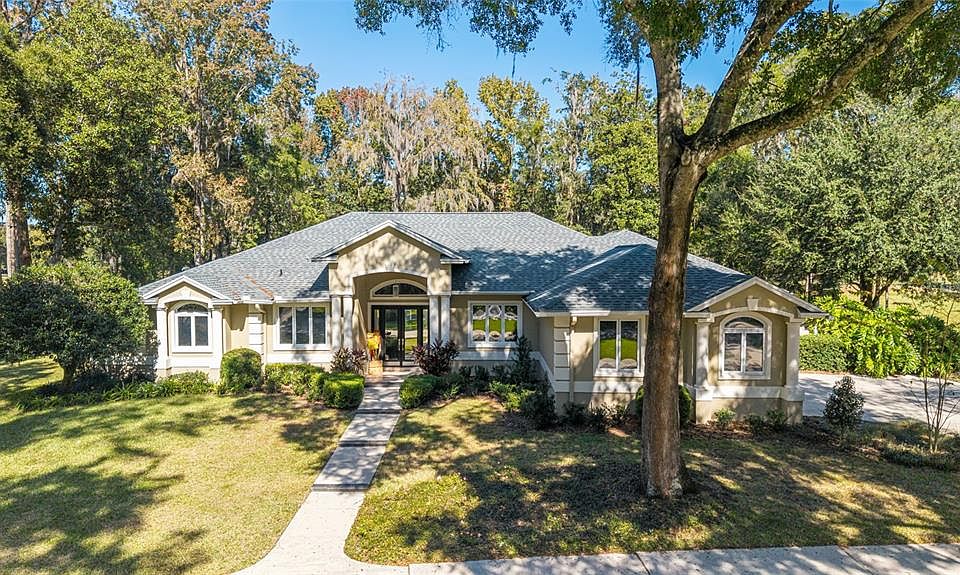 Welcome to this charming 4 bedroom, 3 bath beauty with a 3 car garage located along the 1st fairway in the Country Club of Ocala. This home sits on a full acre with a backyard dotted with gorgeous trees. Inside, you’ll find beautiful hardwood floors throughout all the main living areas. There’s a formal living room with French doors leading out to the pool, a formal dining room and a cozy family room with a wood burning fireplace and sliders that open to the lanai. The kitchen overlooks the family room and features warm wood cabinets and granite countertops. The split bedroom layout gives everyone their own space. Two bedrooms share a full bath, while the fourth bedroom sits near the primary suite and has access to a full bath that also works as the pool bath. The primary bedroom is oversized with room for a sitting area and also has French doors that head right out to the pool. And speaking of the outdoors, you’ll love the screened-in pool, covered lanai and peaceful views of the golf course and mature trees. It’s the perfect spot for morning coffee or afternoon swims. A wonderful home in an unbeatable setting!