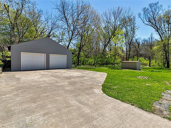 Outside, driveway and leads to an oversized, two car detached garage with cabinet storage provides plenty of space for parking and a workshop!