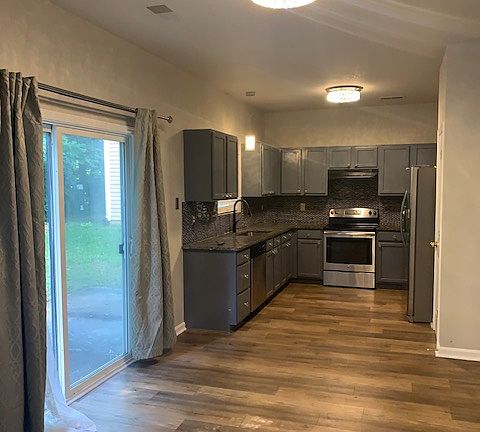 Beautiful house in a desirable quiet neighborhood with new LVP flooring and fresh paint throughout. Features three large bedrooms, a large loft used as a TV lounge or for entertainment. Remote controlled ceiling fans, Premium appliances. Gas fireplace. Vaulted ceilings. Two car garage. Nice flat yard backing up to woods for perfect privacy. High end Washer and Dryer included.