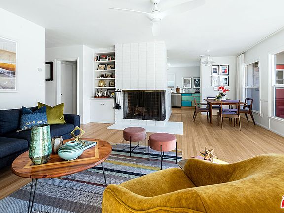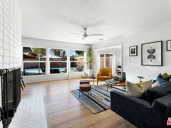Stylish and beautifully renovated 3BR/2BA 1,785sqft Mid-Century Ranch with pool in quiet North Hollywood neighborhood just minutes to NOHO West. Sun-drenched flowing, open floor plan with refinished, original warm wood floors, LR with white brick fireplace & attached Library/Den with secret passageway through wall of books. Dining area with huge picture windows to expansive outdoor pool-side patio for entertaining. Spectacular one-of-a-kind, custom designed kitchen with full Cork flooring, Breakfast Bar, Stainless appliances & Professional 6 burner Stove w/griddle & DBL Oven Range for the most discerning chef. Primary en suite BR and 2 Addl BRs enjoy 2 stunning Baths with gorgeous Brazilian floor tiles. Enormous Flex-Space off of Kitchen/Laundry Room offers options for Studio/Media Rm./Office or possible 4th BR. Newer Appliances, Cool Roof, HVAC/Ducting, Electrical, Ceiling Fans, New Driveway & variable speed Pool Pump, low maintenance, drought tolerant landscaping. This reimagined mid-century with high-design brings a Slim Aarons era to mind and is a most compelling offering.