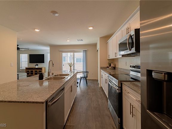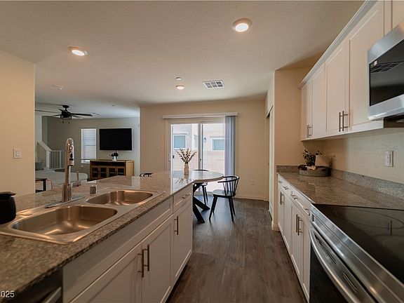 Experience resort-style living in this beautiful single family home in Watercolor! This 1,577 SF home offers plenty of space thanks to of open-concept living design, featuring 3 spacious bedrooms, 2.5 bathrooms, a loft, and an attached 2-car garage. All SS appliances, high-efficiency zoned AC, making this home truly move-in ready. Thoughtful upgrades add even more value, including ceiling fans, and a stylish single-basin sink with upgraded faucet,. As a Watercolor resident, you’ll enjoy exceptional community amenities: multiple pools with shaded cabanas, playgrounds, basketball courts, BBQ areas, and a pet-friendly park. The HOA even covers internet and cable for added convenience and value. Ideally located with quick freeway access, this home is just minutes from the VA Hospital, Aliante Resort & Casino, and nearby shopping centers.