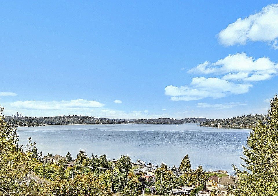 Huge Panoramic Lake Washington Views! Luxury 5 bd, 4 bth, nearly 5k sqft mid-century modern brick basement rambler w so many amenities. Gigantic, weather proof reception sized deck, gives the impression of floating while looking out to 180 degree Lk views perched atop Rustic Rd. Wet bar and 2nd entertaining area, equipped w wine cooler, allows for parties to remain on, while coming in from the heated pool and into the sauna. 2014 finishes throughout. Spectacular master retreat! Must See!!!