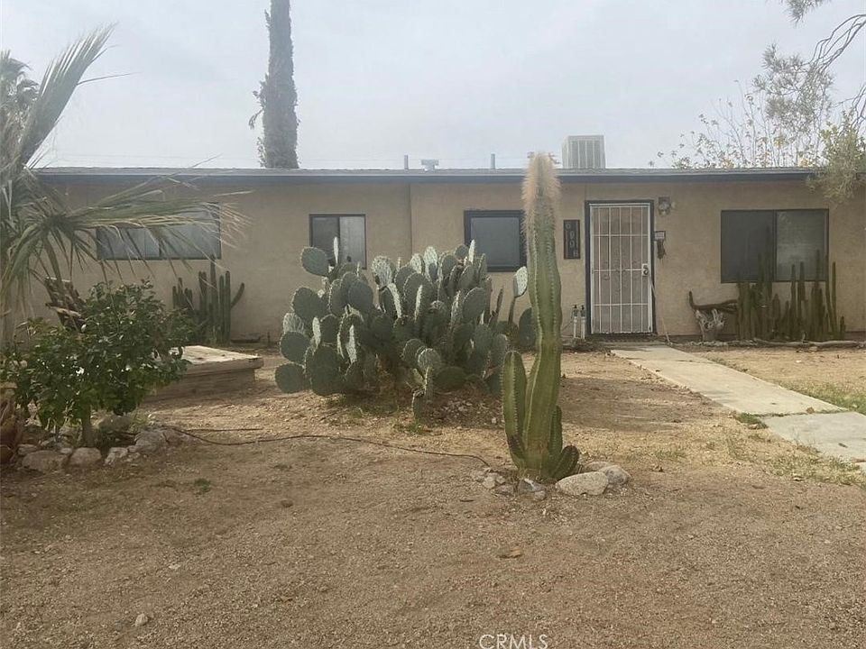 This charming home sits on a .45-acre lot, offering 1,102 square feet of living space with 2 bedrooms and 2 bathrooms, built in 1984. The property has a large backyard with stunning views of Joshua Tree National Park, perfect for outdoor enjoyment. Located at the end of a quiet street on the south side of Highway 62 in 29 Palms, it’s ideally situated for both peace and convenience. The Tortious Rock Casino is just a short 5-minute drive away, while the Marine Base is 15 minutes by car. Additionally, Theater 29 is located nearby, providing easy access to local entertainment. Buyer to verify square footage. A fantastic location for those looking for both tranquility and accessibility! This 2-bedroom, 2-bathroom home offers a spacious bonus room that can easily be converted into a third bedroom. It also features two double garages with a 3/4 bath and additional space between them that could be used for a kitchen or other purposes. Located near the park with stunning mountain views, this property provides a fantastic opportunity to own a home in a desirable location at an "as-is" price, allowing you to make updates and personalize it to your liking.