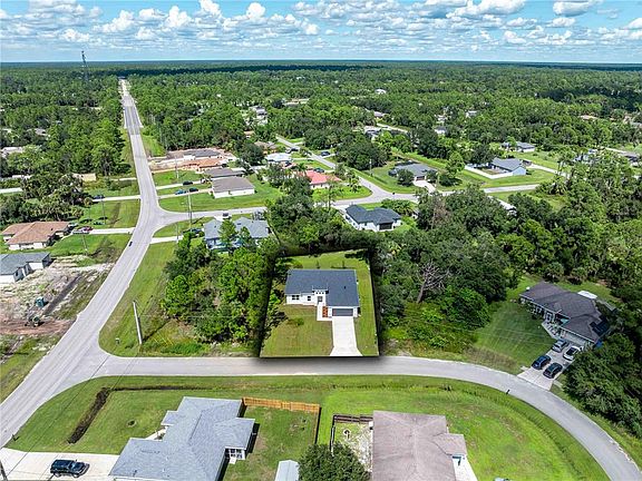 MOVE IN READY! This brand new construction home on a OVERSIZED LOT features 3 Bedrooms + Flex/Office, 2 Baths, 2 Car Garage. NO HOA, NO CDD AND NOT IN A FLOOD ZONE. The open-concept floor plan seamlessly connects the kitchen, dining, and living areas—perfect for everyday living and entertaining. The kitchen features quartz countertops, stainless steel appliances, soft-close cabinetry, and a large center island. The spacious primary suite offers a walk-in closet and spa-style bathroom with dual vanity, tiled walk-in shower, and sleek fixtures. Additional bedrooms are generously sized, ideal for family or guests. This home includes 9'4" ceilings and tile plank floors throughout home. Our homes are energy efficient with spray foam insulation and we include an energy efficient hybrid water heater. North Port is one of Florida's fastest-growing cities, offering the perfect combination of affordability, convenience, and quality of life. With a strong sense of community and a wide range of amenities, it’s a great place to live, work, and play. The city is also home to the North Port Aquatic Center, Atwater Community Park, and many other recreational spots for residents and visitors alike. The pictures shown are representative of this floor plan, but of a different home. One or more photo(s) has been virtually staged.