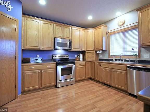 Wow! Beautiful pond view on a cul-de-sac. Oversized kitchen features 42 inch upper cabinets, stainless steel appliances and more! Four generous bedrooms on one level. HUGE master suite features large walk in closet and bedroom-sized bathroom with separate shower and jetted tub. Lower level bedroom features a SECRET ROOM! Zoned heating and cooling makes for comfort on every level! Walk to West Draw Park and Cottage Groves extensive trail system. Hurry!