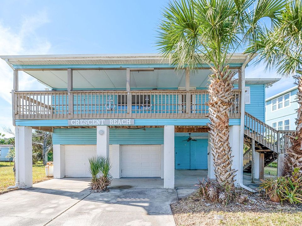 CRESCENT BEACH HOME just steps from the ocean, located south of historic St. Augustine, FL. This charming 2-bedroom, 2-bathroom home sits on a SPACIOUS .24-acre lot and offers endless possibilities. Seller is offering a REPAIR concession. There's a DOUBLE-CAR GARAGE and WORKSHOP below with ample storage space for all your beach gear and more. Enjoy comforts like a 2016 HVAC system, open-concept living, a cozy GAS LOG FIREPLACE, and a FRONT BALCONY perfect for relaxing. Whether you’re looking to embrace the coastal lifestyle or expand, this beach home has desired potential!