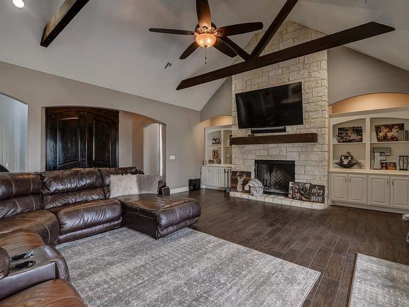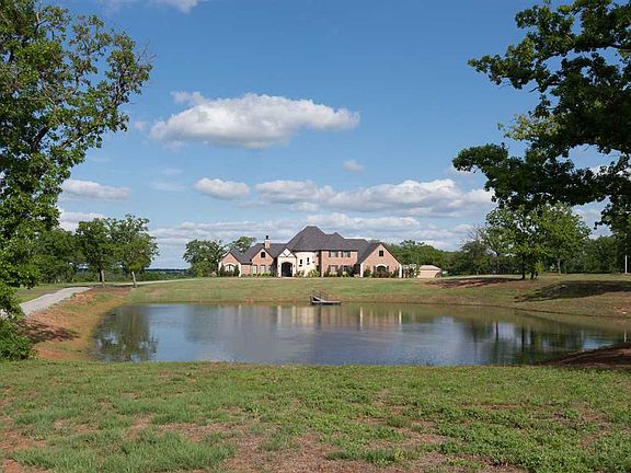 A Picturesque Setting, a Gorgeous Home & 20 Acres to Call Your Own! If you're looking for room to grow, both inside and out, this property is for you! The panoramic view complete with iron gate entry and stocked fishing pond creates the framework for this beautiful home with almost 4500 sq. ft. of luxury living and well-planned spaces. Designed for lots of family and friends, this property will be the place where everyone wants to "hang out". The double door entry leads to an easy-flow floor plan with large living area complete with 2-story stone fireplace and vaulted ceiling framed by wood cross beams. This spacious living area flows easily into a large kitchen boasting a sizable eating bar, gourmet range, beverage nook with wine frig, walk-in pantry and flanked by a large dining area with built-in hutch. Nestled in one corner of the home, the master suite offers a large sleeping area with private patio access, a spa-like bath with double vanities, spacious walk-in shower, soaker tub, large walk-in closet that doubles as a storm shelter, and convenient pass-through to the family laundry room. Custom, built-in storage cubbies and designer half bath add convenience and organization. Privately located on another side of the home are three more roomy bedrooms, all with walk-in closets and two sharing a Jack-and-Jill bath. A third, hall bath with exterior access would make a terrific pool bath for future improvements. The lovely circular staircase, accented by iron banisters and designer chandelier, leads you to more than 1100 sq. ft. of "family fun" space. First is the recreational/flex room flanked by a cozy alcove perfect for the in-home office. The "exercise" room is ready-made for gymnastics and tumbling featuring a built-in gymnasium floor. This floor is easily removed for future use as a 5th bedroom or media room. A 4th full bath and terrific attic storage finishes the second-floor space. The expansive, eastern exposure patio is perfect for entertaining or enjoying the great outdoors and there's plenty of room for that future in-ground pool. A 30' x 40' workshop complete with concrete flooring and electricity completes the picture.