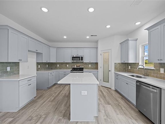 The Alexandria is truly one of a kind, offering an exceptional layout with two primary suites plus three additional bedrooms and 3.5 bathrooms. The open-concept design showcases a stunning kitchen with upgraded cabinetry, quartz countertops, and a stylish tile backsplash, complemented by soft-close features throughout. Durable LVP flooring flows through the main living areas, creating both beauty and functionality. A spacious loft provides additional living or entertainment space, while the large back deck is perfect for outdoor gatherings. With a 2-car attached garage, this home delivers the perfect blend of comfort, convenience, and modern style.