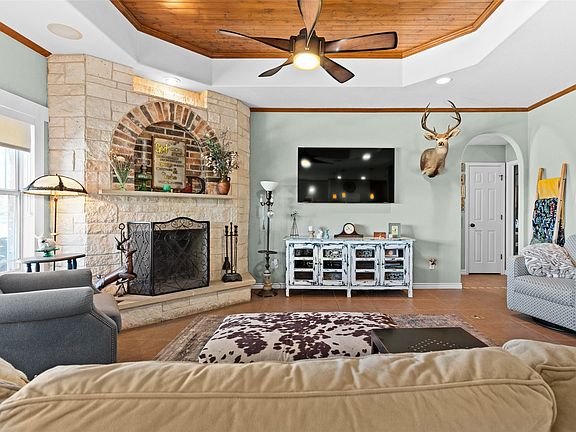 Peaceful country living in Lampasas County! Custom home situated on 7.49 acres. Quality craftsmanship throughout with open concept living. Chef's kitchen with custom cabinetry and large breakfast bar. Split layout with 3 bedrooms, 2 bathrooms, and flex space off entry - perfect for second living or office. Cozy, brick wood-burning fireplace. 40x35 barn. Detached workshop is 40x20 with bathroom and AC. Covered RV parking 42x23 with hookups. 20x14 storage shed. Large back porch to enjoy those sunsets and country breezes! Conveniently located less than 60 miles from Austin, 40 minutes from Temple, and just minutes from downtown Copperas Cove or Lampasas. Bring your horses or livestock and make this property your own.