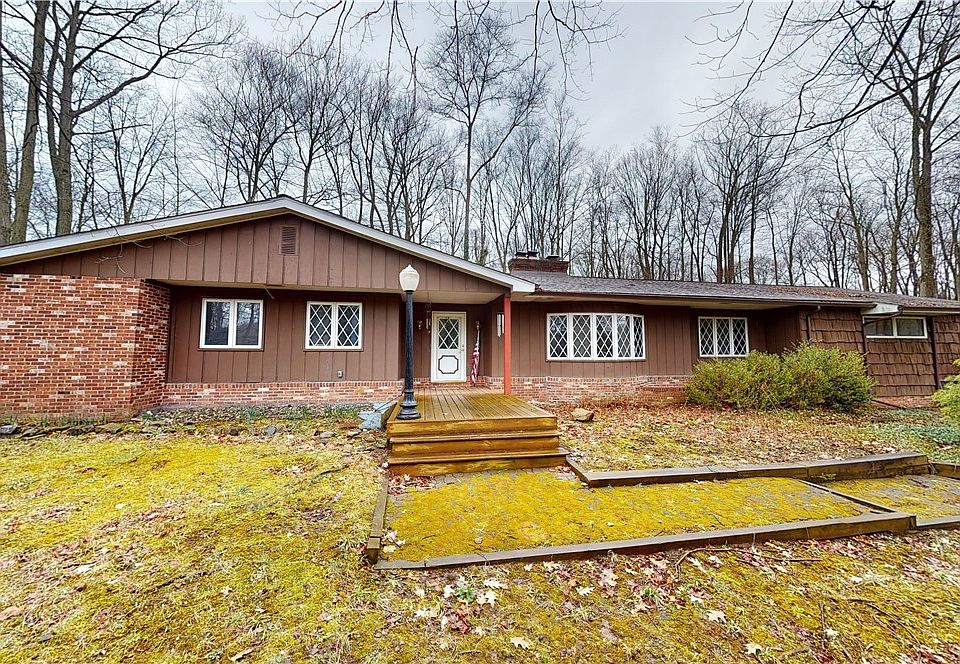 Welcome home to one floor living with this charming ranch located on 1.3 wooded acres in Aurora. A perfect blend of quiet country living but close to the city and all your favorite amenities. With 4 bedrooms and 3 full bathrooms, this well-maintained home is just waiting for you to apply your own personal touches to make it your own. The main living area features two comfortable family/living room spaces each with a fireplace/woodburner. There is also a 3-season room with beautiful wrap around view of the wooded property. The large two car garage has plenty of space for storage and parking and leads right into your oversized laundry room. The basement is partially finished with separate exercise room, storage or bonus room with built in shelving, Recent updates include: New Hot Water tank (2021), new boiler (2023), New well pump (2018), new water softener (2023), new roof including completely replaced decking (2020), and new gutters/downspouts (2020). Outside the property includes a small pond, a sturdy storage shed, raised bed gardens, and an invisible dog fence. The well and septic were just cleaned last year.