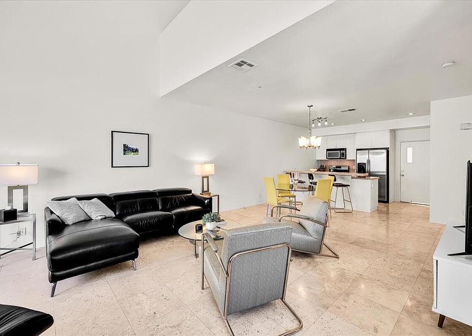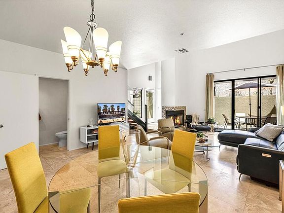 Back on the market! Welcome to 691 E. Arenas, this town-house style condo is located in the gated community of 48 @ Arenas, just minutes from the popular Palm Springs downtown district. This stylish 2-bedroom, 2.5-bath home offers great views of the San Jacinto Mountains with modern design, dramatic volume ceilings, and abundant natural light. The main level features an open living area with fireplace, dining space, and a well-appointed kitchen, all flowing seamlessly to a private patio with stunning mountain views. The primary suite is located downstairs with direct patio access, while the loft-style second suite upstairs provides flexibility for guests or a home office. The upper loft offers access to the large balcony with amazing mountain views! Both bedrooms include en-suite baths for ultimate privacy and spacious walk-in closets. Additional highlights include an in-unit laundry, 2 assigned carport parking spaces and access to community pools and spas. Perfectly located and within close proximity to central Palm Springs-- near shopping, dining, and entertainment--this residence combines convenience with resort-style living. Low Hoa fees include; gated entry, earthquake insurance, water, trash, pools/spas, and roof maintenance. Fee Land. Furnishings may be negotiated outside of escrow.