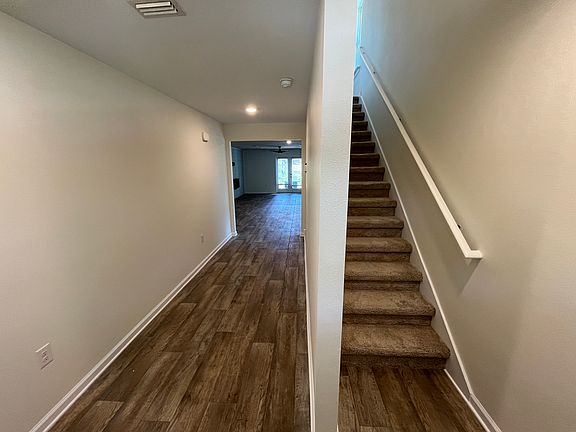 Laundry room on upper level washer and dryer included The 3 additional bedrooms are separated from Primary bedroom by open air area and laundry room. The layout has a generous flow .Utilities are low because it is a smart house security system included in rent . Brand new front door and door hardware .