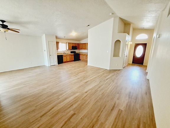 Cute 3 bed, 2 bath, 1400 sq ft home. Home features: Open layout. Refrigerated air, hardwood floors, all kitchen appliances, cute minimal maintenance back yard. Non-aggressive breeds of dogs welcome, No cats. Tenant is responsible for ALL utilities. Home is in a great location near shopping and close to freeway access, which makes it a short 15-20 minute drive to Albuquerque. Schedule your showing today!