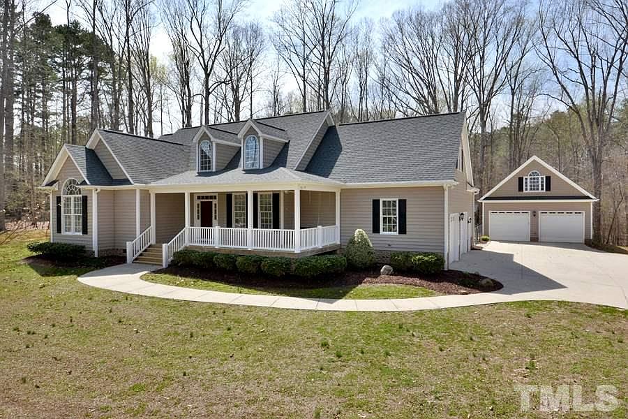 Welcome Home to this custom gem perfectly nestled on 2.4 private acres with views of Holt Lake. Impeccably well maintained. Completely paved drive with additional parking, landscaped, fenced back yard. 2 car oversized side entry garage with 2 car detached oversized garage with upstairs unfinished area. Central vac, granite counters with custom cabinetry, built-ins, stunning family room ceiling, stone fireplace in family, rocking chair front porch with spacious back porch. Sep utility room. Shows well.