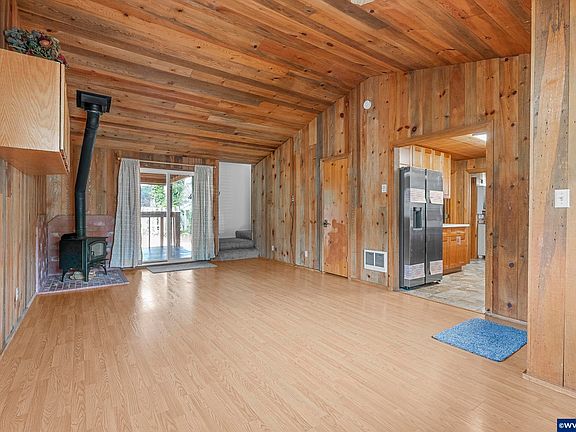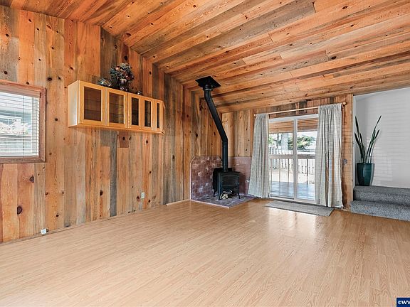 Enjoy this freshly updated home featuring new carpet upstairs, new vinyl flooring downstairs, fresh paint inside and out, and new kitchen cabinets, countertops, and appliances—including washer and dryer. The landscaped front yard adds curb appeal, and the spacious backyard is perfect for outdoor fun. The main level includes a primary bedroom, vaulted wood plank ceilings, and a cozy wood stove in the living room. Upstairs offers two bedrooms with a Jack-and-Jill bathroom. Shed in the backyard with power and water! Conveniently located near beaches, Devils Lake, the Lincoln City outlet mall, and great restaurants—ideal as a primary home, vacation getaway, or investment property!