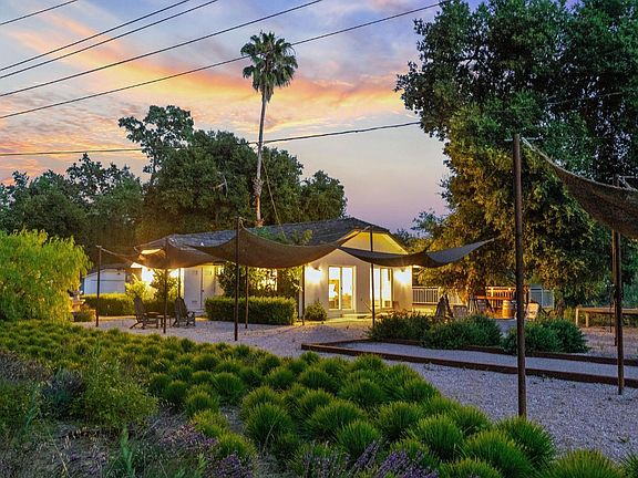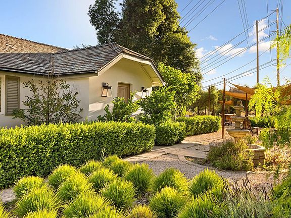 Set on a 1.14 acre parcel along the Napa River with riverside views and rolling hillside vistas, this exquisitely curated turnkey income-producing retreat blends organic textures, refined finishes, and indoor-outdoor harmony. Just a short mile to downtown St. Helena and tucked at the end of a private driveway, the fully furnished main residence features a seamless open-concept layout, grounded by engineered French oak floors and smooth plaster walls. The living room, with vaulted ceilings and a walnut fan, centers around a gas-start fireplace and a custom designed modular sofa. A formal dining area under a wrought iron chandelier opens to a spacious entertaining deck, while the chef's kitchen pairs French lime-plaster countertops with top-tier appliances, brass accents, and a generous island with seating for five. The two en suite bedrooms offer custom designed beds, propeller fans, and spa-inspired limestone bathrooms with Kohler fixtures. Outdoors, enjoy a private entertainer's haven with an oversized patio, hot tub, beautifully landscaped entry leading to sitting areas covered with coconut fiber sunshades, firepit, dining and lounge zones, a water feature, and a small olive grove with established trees. This home exudes warmth and relaxation and an ideal investment property.