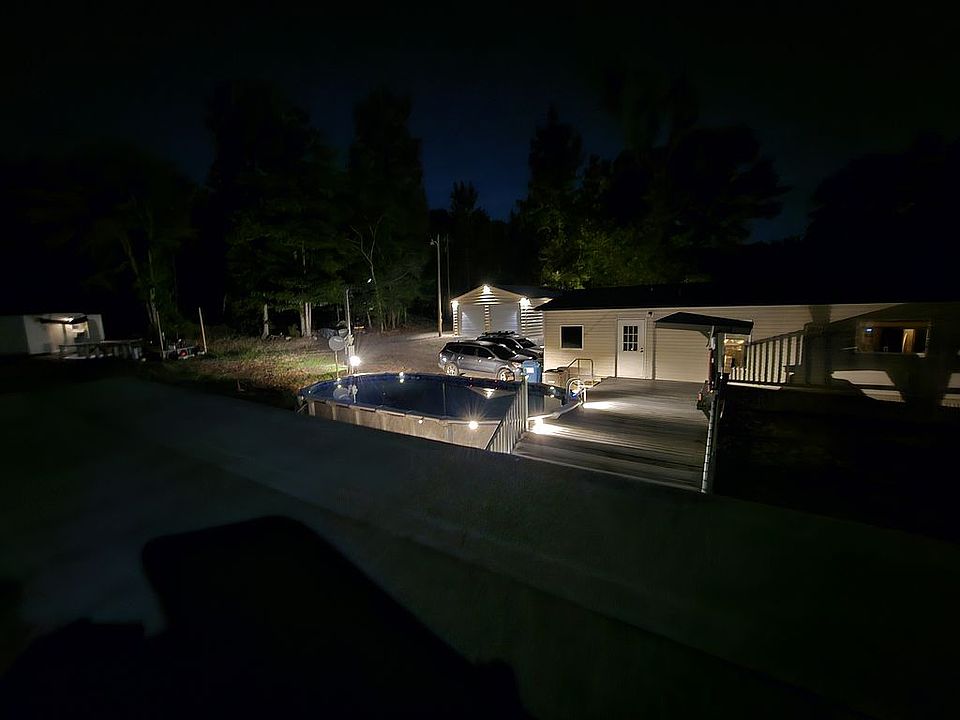 Enjoy a 15x30 above-ground pool with a brand-new liner (Sept 2025), surrounded by LED photo-sensor lighting that also illuminates trees, walkways, and structures for peaceful night ambiance. Two RV hookups are on-site: a 50amp near the garden and a 20amp near the pool.