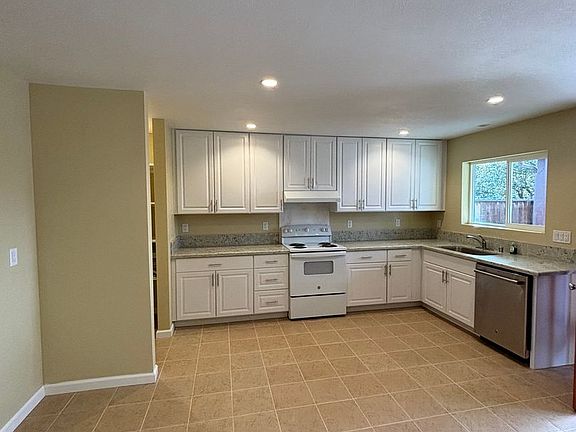 Enjoy an open floor plan with brand new tile flooring, fresh paint, and recessed lighting throughout. The sleek kitchen is fully equipped with brand new white cabinetry, granite countertops, and stainless steel appliancesincluding a dishwasher and electric range.