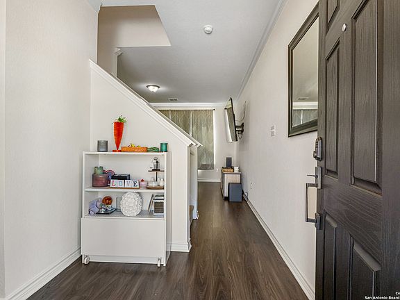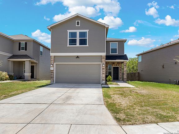 Welcome to 6910 Beltran Pass! Built in 2019, this stunning home sits on a rare double cul-de-sac lot with no back neighbors, offering unmatched privacy and peace of mind. Step inside to an inviting open-concept layout with 10-ft ceilings, crown molding, abundant natural light, and freshly painted interior and exterior. The kitchen is equipped with granite countertops, stainless steel appliances, rich cabinetry, and a raised, extended breakfast bar for casual dining that flows seamlessly into the spacious living and dining areas perfect for entertaining. Upstairs, enjoy a large primary suite with walk-in closet and private bath, plus generously sized secondary bedrooms. The backyard offers the ultimate privacy with no neighbors behind. Even better the refrigerator, washer, and dryer all convey with the sale! Conveniently located near Lackland AFB, shopping, dining, and major highways, this home truly combines style, comfort, and location!