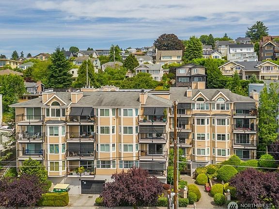 If you are waiting for a spacious well-priced condo with superb views, take advantage of this truly rare opportunity! Enjoy Panoramic saltwater, island and Olympic Mountain views from the living and dining rooms, kitchen and master bedroom! Private top floor unit w/vaulted ceilings. Designed for entertaining, you'll love the open floor plan, stunning sunsets, stylish kitchen w/quartz countertops. Fantastic location where you don't need a car to thrive and enjoy West Seattle's vibe. 1 Block to grocer, Starbucks, restaurants and transit. Near parks and beaches. King size master with private bath, Queen size 2nd bedroom with continental bath. Newer LVP flooring & GE commercial AC/heater wall unit.