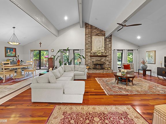 Welcome to this beautifully maintained brick ranch featuring an inviting open-concept layout with abundant natural light and elegant updates throughout. The spacious living and dining areas boast soaring vaulted ceilings, recessed lighting, and warm hardwood flooring, creating a comfortable yet sophisticated atmosphere. The stunning kitchen is offering rich wood cabinetry, granite countertops, stainless steel appliances, a stylish tile backsplash, and a convenient breakfast area overlooking the serene backyard. The open flow between the kitchen and family areas makes this home perfect for both entertaining and everyday living. Enjoy the versatility of multiple living spaces, including a formal sitting area bathed in sunlight and adorned with custom window treatments and high-end finishes. Every room reflects pride of ownership and thoughtful attention to detail. Step outside to a peaceful setting surrounded by mature trees, ideal for relaxing or hosting gatherings. This home truly combines timeless charm with modern comfort — move-in ready and waiting for its next owner to fall in love. Open house Sat. and Sun. 11 am - 3 pm.