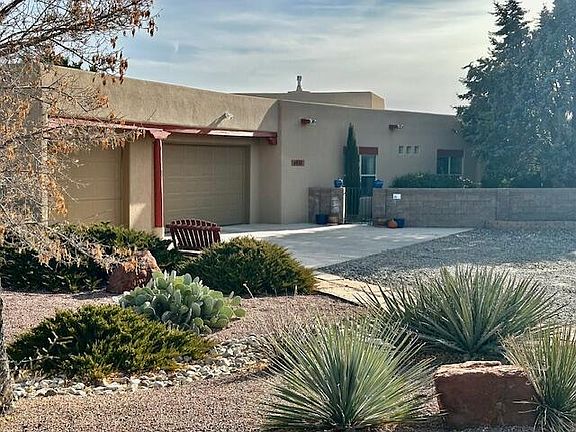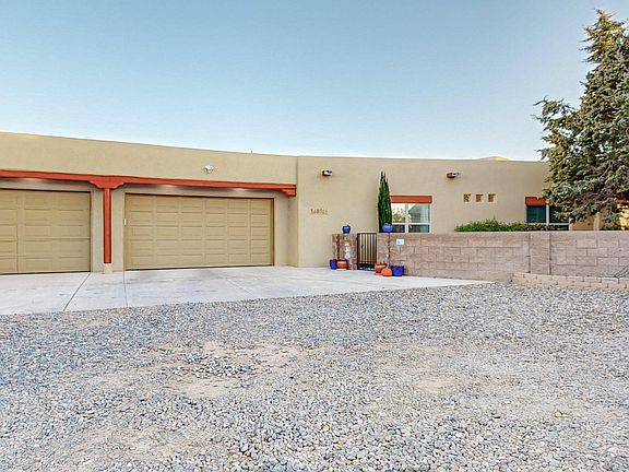 You will love this absolutely gorgeous pueblo style home in desirable Vista Entrada. This home is on a half an acre and has amazing views of the Sandias from the beautifully landscaped back courtyard, which has a covered patio and water feature. You will be delighted by the warm and inviting interior with tongue and groove ceilings, lots of natural light and a wonderful floorplan. Enjoy walking barefoot on the zoned radiant heated floors on the coldest of days. or relax in the luxurious steam shower. The home features front and back courtyards, an oversized 3 car garage, and beautiful woodwork throughout the home. The owners are willing to sell the furnishings in the home as well. The list goes on and on! Schedule your showing today!