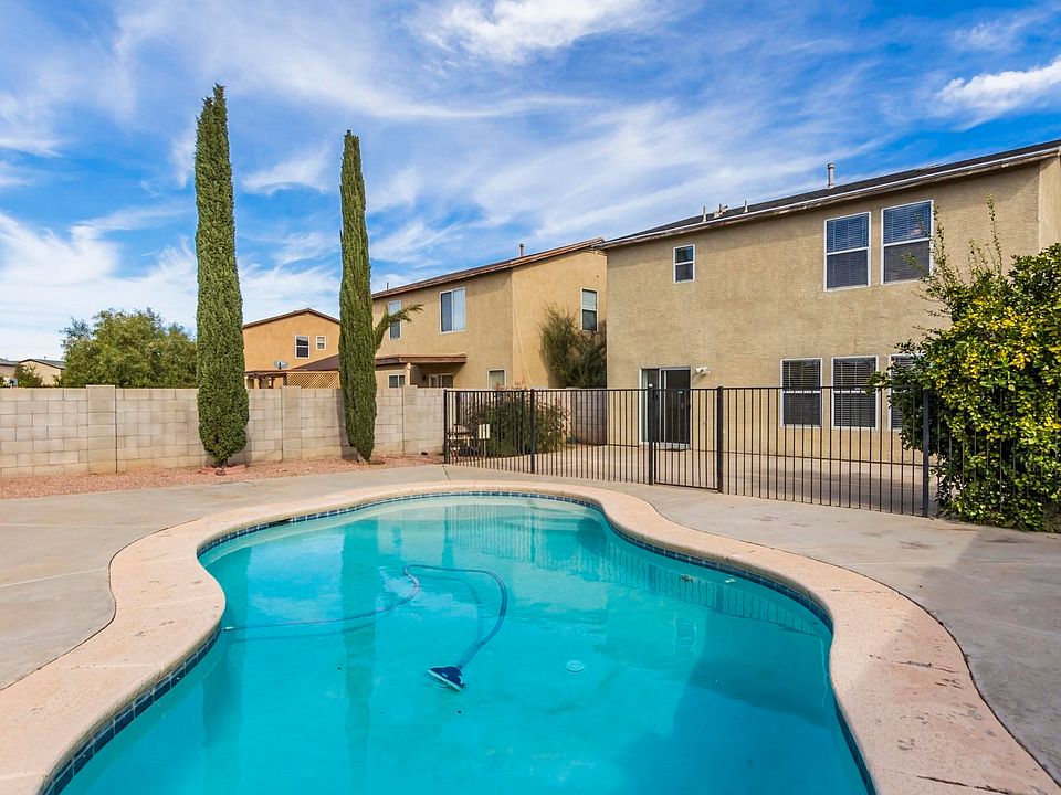 Wonderful 2 story Home with Pool in the Heart of Julia Ranch West! This light and bright home offers 3 Bedrooms, 2 1/2 Baths and 2 Car Garage. Fresh Interior paint throughout. Great room concept with neutral carpet and new flooring in all traffic areas. Kitchen with breakfast bar, lots of counter space, pantry closet and black appliances. Convenient 1/2 bathroom on main floor. Upstairs find large Master bedroom with walk-in closet. Master Bath with new flooring and Shower/Tub combination. Also find 2 additional bedrooms plus guest bath with Shower/Tub combo. Laundry room conveniently located upstairs too. Enjoy the Arizona afternoon at the low care backyard with Pool. New roof installed 2018. 2 Year Termite warranty.