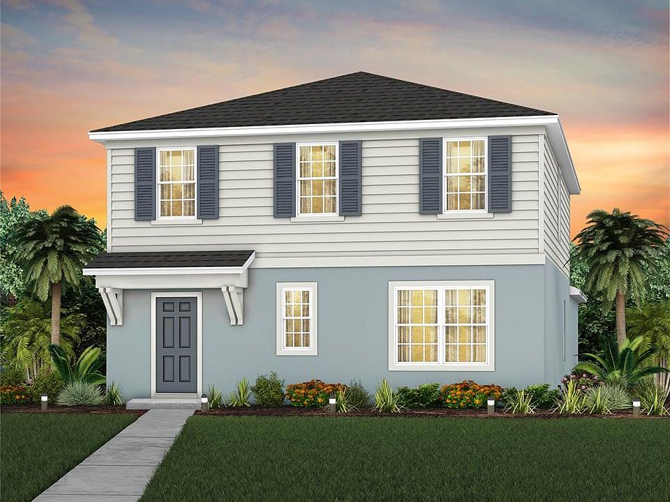 Under Construction. EverBe is a new master planned community where convenience and connections combine to create a new standard for home. Located in Orlando with quick access to 417 & 528, this lifestyle community will offer miles of pathways & trails, wi-fi-enabled green spaces, unique outdoor recreation areas, a fitness center, a clubhouse complex with resort pool, 2G internet, and a waterfront amenity and town center. Get excited for EverBe - everything home should ever be! Welcome to the luxurious Mabel bungalow by Pulte, a stunning new construction that perfectly blends modern design with everyday convenience. This Florida Mediterranean-inspired home offers 4 bedrooms, 3 bathrooms, a loft, a covered lanai, and a 2-car rear-load garage. Upon entry, you'll be greeted by a grand foyer with ample storage, including two closets, leading into an open-concept living space. A private hallway off the foyer offers a guest bedroom and full bath, creating an ideal space for visitors. The heart of the home unfolds into a spacious kitchen, café, and gathering room, with seamless access to the covered lanai—ideal for indoor-outdoor living. The chef’s kitchen is a true standout, featuring a large center island, corner walk-in pantry, and Whirlpool stainless steel appliances, including a refrigerator. Tilden white cabinetry, a decorative tile backsplash, and Lyra quartz countertops complete the space, ensuring both style and functionality. Upstairs, the luxurious owner’s suite provides the perfect retreat, tucked at the rear of the home for ultimate privacy. The spa-inspired en suite bathroom boasts a glass-enclosed shower, a quartz-topped dual vanity, and a spacious walk-in closet, creating a sanctuary of relaxation. Two additional bedrooms, sharing their own dedicated hallway, offer added privacy and comfort, while a full bathroom serves the space. The second floor also includes two linen closets, a laundry room, and a large loft area—ideal for flexible living. Thoughtful luxury touches throughout the home include porcelain tile flooring on the first floor (except the first-floor bedroom, which features plush, stain-resistant Shaw brand carpeting), carpeting on the staircase and second-floor bedrooms, and pre-wiring for pendant lighting. Smart technology features like a smart thermostat, video doorbell, and additional LED downlights ensure this home is as advanced as it is beautiful. This exquisite home offers the ultimate in luxury, convenience, and modern design—everything you need to live and relax in style.
