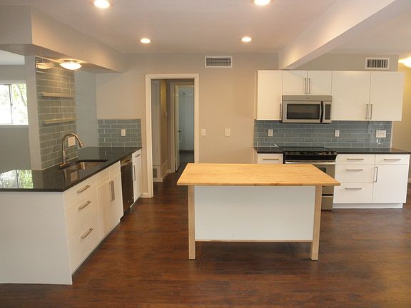 Amazing Modern remodel! Owner Agent. Rare master down and separate study down. Also has a small study up. Complete remodel. Walls removed to create an open floor plan designed by architect. High end finishes, Ceramic Valves in baths. Walk in shower in master. Bain Ultra soaking tub in 2nd bath. New AC, plumbing, electrical box and outlets, cabinets, granite counters, fence, landscaping, private patio. Large Pecan+Pear Tree in back front