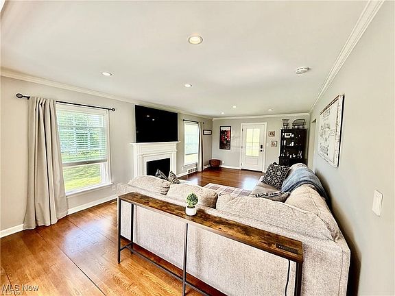 Welcome to this beautifully renovated Cape Cod home, nestled in the highly sought-after Hudson City School District! Situated on a peaceful dead-end street, this charming 4-bedroom, 2-bathroom home is just minutes away from all of Hudsons amenities. The kitchen has been thoughtfully updated with stainless steel appliances, sleek quartz countertops, and a stylish subway tile backsplash. Plus, enjoy the added benefit of a reverse osmosis water filtration system. Adjacent to the kitchen is a spacious dining room and living area, complete with a cozy fireplace, crown molding, recessed lighting, and easy access to your expansive 3/4-acre lot. The first floor also features a full bathroom and one of the bedrooms, which is currently being used as a convenient laundry/mudroom. Upstairs, the primary bedroom boasts soaring vaulted ceilings with rustic beams and a generous walk-in closet. Two additional bedrooms and a fully updated bathroom complete the upper level. The basement offers endless possibilities with plenty of storage space and is ready for your personal touch. Don't miss out on this gem. Home comes with a 1 year home warranty from Americas Preferred!! schedule your showing today!