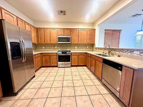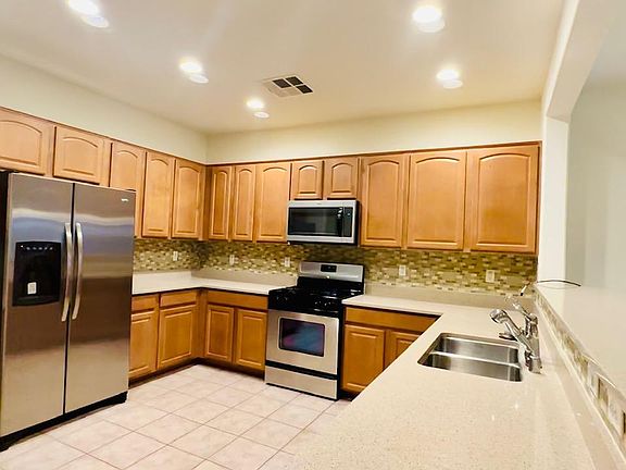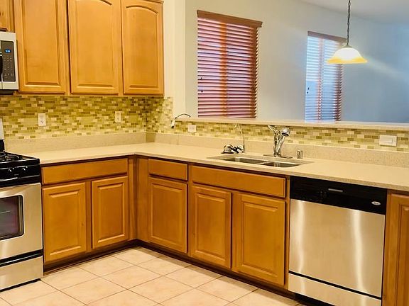 Section 8 welcome! Very well maintained, with beautiful wood like floor in all the bedrooms and tiles on all other places. Very favorable floor plan, formal dinning room, living room and family room. Ceiling fan with lights in every room. Upgraded cabinets with stainless steel appliances in kitchen. Low care landscaping. The property features solar panels, allowing you to enjoy energy efficiency and low energy cost. This home is in a beautiful master planned community with an big water park, basketball court and a school. Walk distance to school. Close to shopping center. Ready to Move in! No smoking allowed. Small pets (up to 20 pounds) permitted.