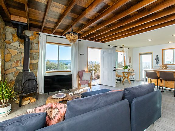 Forget your worries in this spacious and serene space. Stylish large 1bd/1bth with brand new mini Split A/C system, is comfortably located between 29 Palms and JT, 10 mins to the park entrance. Property sits on a private and fully fenced 2.5 acres, so bring you Pups :) Retro trailer with a sofa bed, cute art studio with an additional sofa bed for afternoon naps or just chillin. gated entrance, patio w/gas BBQ, cute bar in the back, with a few outdoor sittings. Smart Amazon Fire TV, full kitchen. Stargazing and sunset views are a must !