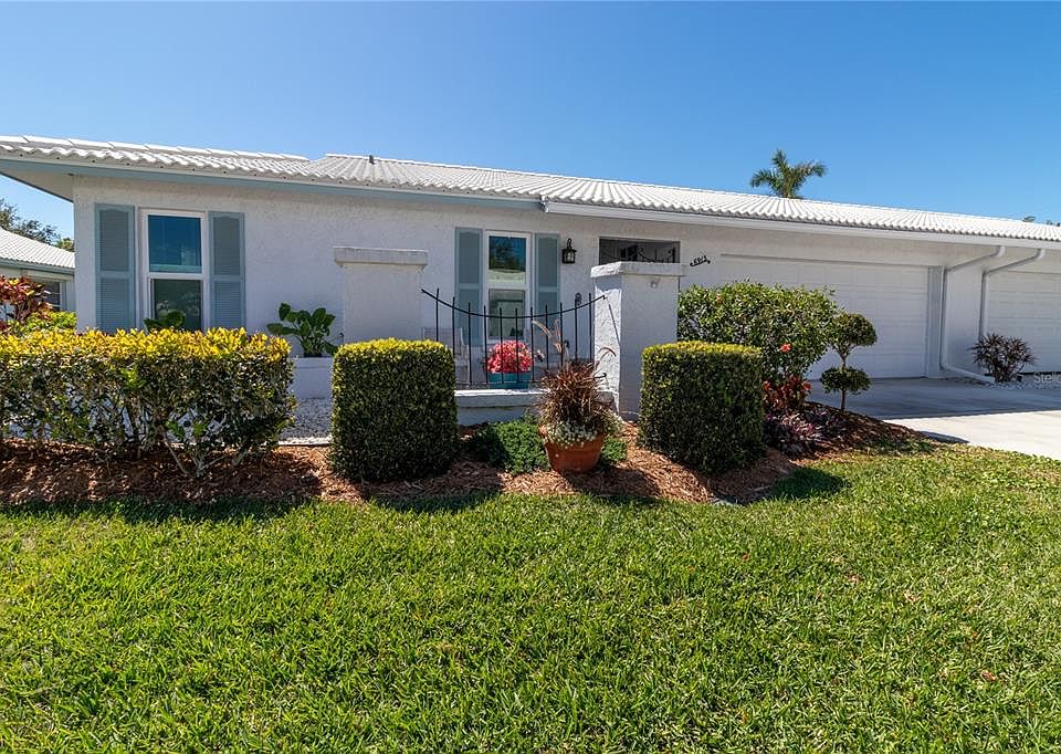 One or more photo(s) has been virtually staged. Welcome to your dream 55+ community in charming West Bradenton! This beautifully maintained condo, nestled on a quiet cul-de-sac in the sought-after Village Green community, offers the perfect blend of comfort, convenience, and peace of mind. Built in one of the most desirable high-and-safe locations. Securely located in Flood Zone X and Evacuation Zone E. With over 1900 sq. ft. of versatile living space, this home features 2 spacious bedrooms, 2 updated bathrooms, and a large galley-style kitchen with new quartz countertops, striking herringbone backsplash, and classic mid-century modern cabinetry. Expansive living areas include bright living/dining room, cozy family room, and a sun-filled Florida room. A roomy 2-car garage with built-in cabinets and shelving, perfect for storage or workspace. Recent updates make this home truly move-in ready with luxury vinyl flooring, nearly all-new windows, refreshed bathrooms, and exterior upgrades including new driveway and charming paver walkway and patio. Step outside and you’re moments from the sparkling community pool, perfect for relaxing or socializing. The location can’t be beat – minutes from Anna Maria Island’s beaches, excellent medical facilities, shopping, dining, and outdoor escapes like Robinson Preserve, Palma Sola Botanical Park, and DeSoto Park. This home is ideal for both relaxation and entertaining, offering a lifestyle that’s as practical as it is enjoyable. Don’t just dream about Florida living—make it your reality!