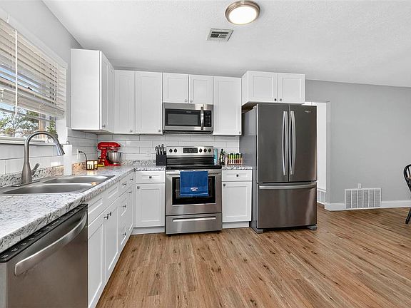 Wonderful, new listing in Lawton’s Almor West addition! This home has been nicely updated and features 2 large living areas, an updated kitchen, a spacious dining room, and great outdoor living space. This kitchen is lovely with shaker-style cabinetry, granite countertops, and beautiful stainless steel appliances. The primary bedroom is spacious and features a walk-in closet as well as a three-quarter bath. Both baths have been nicely updated! The other 2 bedrooms are nice-sized and are located down the hallway with a full bath. In the hallway there is additional storage for linens as well as coats or you could use one of the areas as a pantry. This home has beautiful laminate flooring throughout except in the bedrooms where there’s carpet. The garage conversion is nicely done and is very spacious. It’s large enough for office space as well as living space and it includes the washer and the dryer area. The front of the home has great curb appeal with wooden shutters and fresh paint. The backyard is spacious and has several trees for shade as well as an oversized and extended patio for outdoor entertaining. There’s also a storage shed tucked in the back corner of the yard and a location for a fire pit. This home is adorable and you really must see it to appreciate its beauty. Call Kim Thomas today for your tour of this home, 580-704–9916.