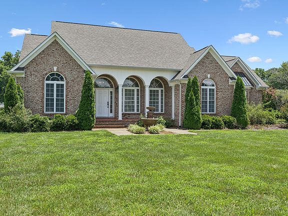 Price Improvement! This stunning all-brick, one-level home is set on a generous and level 1.25-acre lot, offering a peaceful and picturesque setting to enjoy every day. A charming fountain and arched front porch welcome you inside, where a spacious foyer opens into the living room featuring a vaulted ceiling, cozy fireplace, and double windowed doors that lead to the back patio and expansive backyard.
