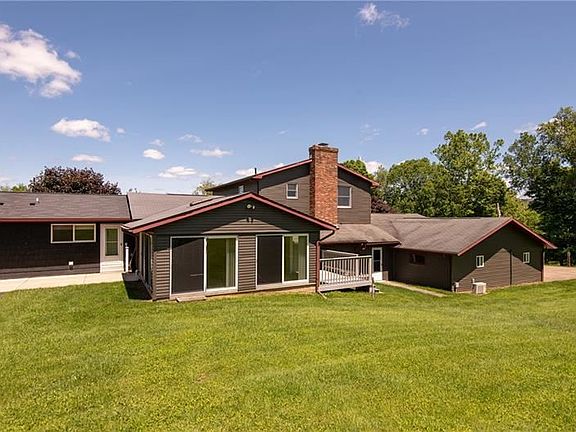 Private, Secluded & Massive in Size describes this home nestled away in the country on 6 acres! A cement & paved driveway leads to Oversized 3 Car Attached Garage with Nature Stone Flooring & Oversized 3 Car Detached Garage/Barn (40x30 1st Stall) (32x39 Combined 2nd/3rd Stall) A Dream come true for someone who needs space for cars, boats, large equipment, carpentry, anything at all! Inside you will find oversized rustic living room with wood burning fireplace, kitchen / dining combo, 3 bedrooms on top level, main floor master w/ full bath & walk in shower & laundry room added in 2015, beautiful enclosed sunroom off kitchen with skylights & 5 sliding glass doors to sit and enjoy the wildlife that comes to visit! Additional kitchen/ game room/ 2 bedrooms on lower level. Zoned heating and cooling to save heat/ electrical bills. Extra workshop, storage galore, so many more amenities you need to come see for yourself! This home is turn key & ready for you!