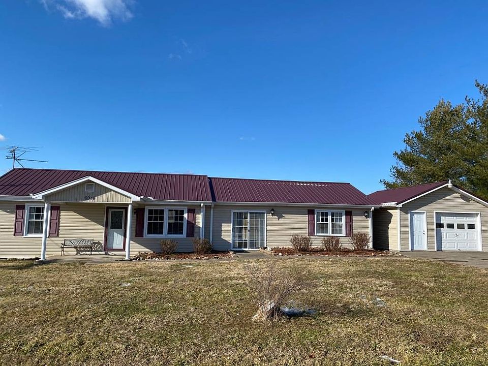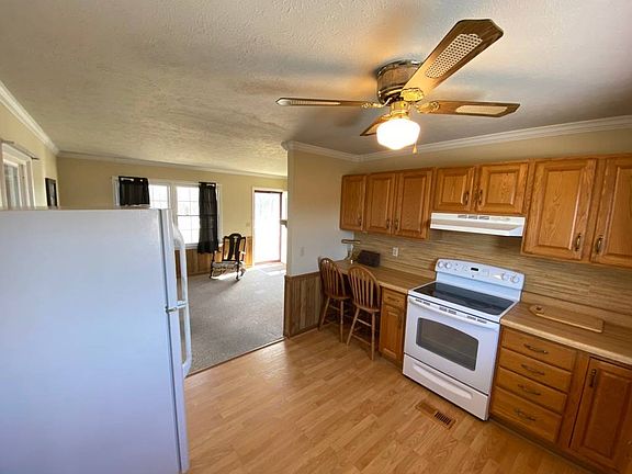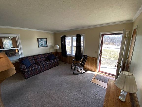 Country living with a view! This charming 2 bedroom home just 7 miles from town has all the space you need with flexible functionality. The kitchen with appliances included offers a great space for preparing those stay at home meals, right off of the living room so you can talk with the family as you cook. The two bedrooms are a great size and the full bathroom offers a walk in shower. The home also offers a great room with handy space for the washer and dryer. The great room could easily have a wall added to gain a 3rd bedroom if needed. However, it is a large space for holiday gatherings for friends and family. The rear deck offers nice views of the neighboring farms and pond. As an added bonus you get a detached garage with a concrete floor perfect for storage or hobbies. You get it all on a manicured lot for $149,900 and the curb appeal is free! Call today to schedule your own personal tour!