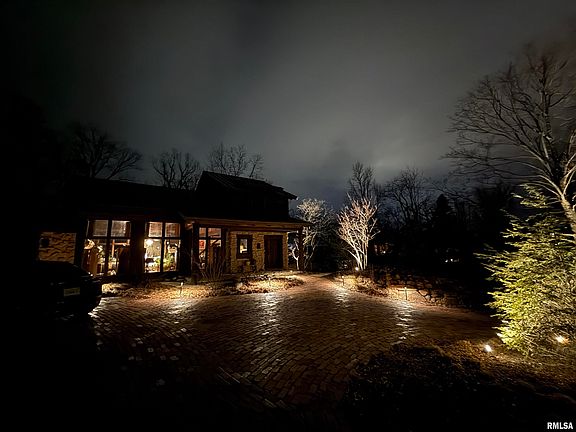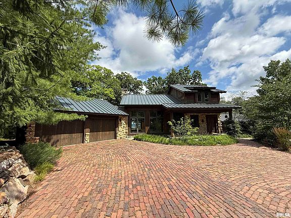 Welcome home to this one of a kind, luxury retreat with extensive river views from every room! Located on over 1.5 acres of private, wooded land, this 'glass cabin in the woods' offers timber and walls built from antique cotton and pickle factories from South Carolina. The exterior is equipped with extensive, professionally installed landscaping with native plantings, gorgeous lighting and 47 tons of Native Iowa Stone and a driveway with reconstructed retaining walls and pavers built from historical Peoria brick roads. Built by Don Hoerr, this truly unique home provides 18' ceilings with exposed beams, walls of windows, a standing seam copper roof, geo thermal and both an upper and lower, oversized garages. When including the finished, walk out basement, this home provides over 3,000 sq ft of living space with the potential for a 3rd bedroom in the basement. The property borders a 540 acre forest nature preserve and is located just minutes from downtown, shopping and access to I-74.