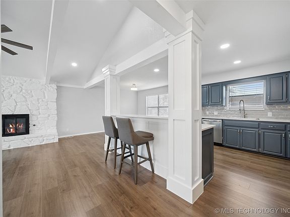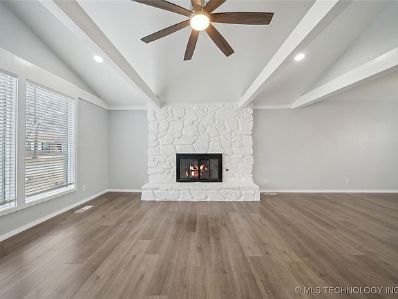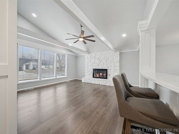 This beautifully newly renovated home in Jenks Schools offers a fresh, modern feel with high-end finishes throughout. The brand-new designer kitchen is a chef’s dream, featuring sleek countertops, top-of-the-line appliances, and stylish cabinetry. The open-concept living and dining area is perfect for entertaining, complete with a cozy fireplace that adds warmth and charm. Each bathroom has been thoughtfully designed with elegant fixtures and luxurious details. With every room thoughtfully upgraded, this home is the perfect blend of style, comfort, and functionality. Don’t miss the opportunity to own this move-in-ready gem! Listing agent is related to seller.
