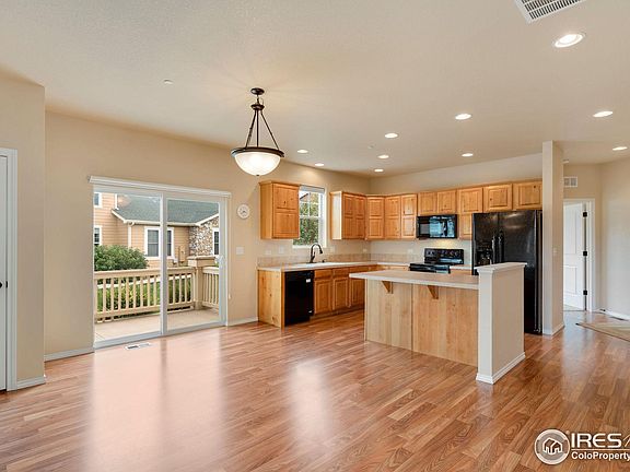 Terrific 3 bedroom 3 bath ranch style townhome offers peaceful, sunny location within one of Greeley's most sought after communities.Large covered porch welcomes everyone.Abundant natural light fills this home. Wonderful functional kitchen with island, 2 spacious bdrm on the main level, 2 baths,laundry on main level. Basement completes home with large recreation room,3rd bedroom, 3rd bathroom. Flex space in bsmt (listed as study) would make nice in home office, library, etc. Unfinished bsmt area, appx 26x14 would allow 4th bdrm and still ample storage room Oversized 2 car attached garage. HOA offers terrific pool, clubhouse, workout room, theater.