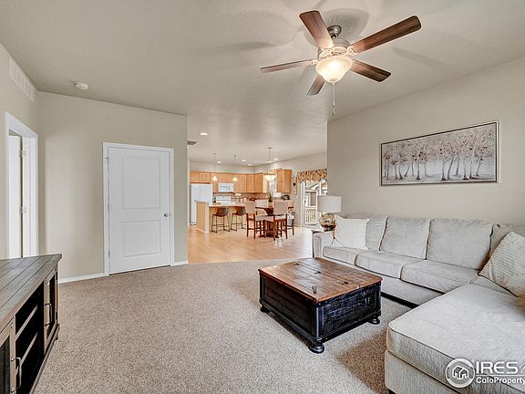 Enjoy living in "Maintenance Free" beautiful Summer Park! This home is a rare "Vail", ranch style, end-unit! This very well cared for, open floor plan, home shows nicely with 2 large bedrooms. The finishes feature upgraded cabinets, wood flooring and quartz countertops in the Kitchen and Primary Bathroom. The primary bathroom has a generous quartz countertop with 2 sinks and tiled walls in the shower. A finished stairway leads to the large unfinished basement providing an additional 1370 SF including a full bath rough in and 2 egress windows for future finished living possibilities if desired. Outdoor living space includes a large covered front patio wrapping around with an uncovered side patio with access from front door and sliding glass door, providing nice light into the home. Summer Park has a resort style Clubhouse with Private Pool and Hot Tub. The Clubhouse has impressive soaring ceilings, beautiful woodwork, fireplace and community kitchen and also houses the nicely equipped Fitness Center.