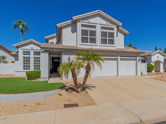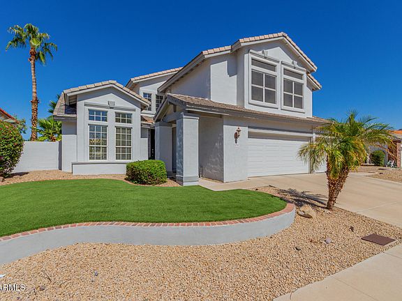 Welcome to Your Dream Home in Arrowhead Ranch! Get ready to fall in love with stunning lake views and breathtaking sunsets from this beautifully upgraded 4-bedroom, 3-bathroom home perfectly situated on a premium golf course water front lot in the highly sought-after community of Arrowhead Ranch. Peace of mind comes standard with a newer A/C unit & roof, both installed in 2020. BONUS: the interior has just been freshly painted! This home offers incredible value in one of Glendale's most desirable neighborhoods. As you step inside, you're greeted by a grand spiral staircase that sets the tone for the elegance throughout the home. The spacious great room with an intimate fireplace flows seamlessly into a generous kitchen featuring a large island, with tons of cabinets & counter space, ideal for both everyday living and entertaining. You'll also find a formal dining room and a welcoming living area on the main floor, all adorned with newer flooring (2020) that adds a fresh, modern touch. Upstairs, retreat to a luxurious primary suite complete with its own fireplace, private balcony, and an oversized en-suite bathroom your personal oasis. A private office/den is located just off the master, offering the perfect work-from-home setup. All additional bedrooms are conveniently located upstairs, providing space and comfort for everyone. Step outside to a scenic backyard designed for year-round entertaining, whether you're hosting a sunset dinner or enjoying a quiet evening under the stars. Don't miss out, this one checks all the boxes. Experience the lifestyle Arrowhead Ranch has to offer! Mortgage savings may be available for buyers of this listing