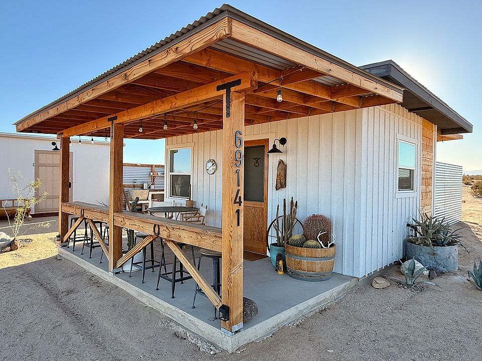 own a piece of high desert history! a fully off-grid 1954 homestead cabin in the Mojave desert. this cabin has been restored and is a fully functional getaway! enjoy the beautiful open desert view from all directions. sit on your new front porch and enjoy your coffee or dinner, and during the hot summer days lounge around the cowboy pool while you grill in the outdoor kitchen. the cabin is fully solar and is on hauled water. this is a fully off-grid living situation, a real desert lovers paradise. there is a fully solar mini split AC system that keeps the cabin nice and chilly all summer long. as well as warm in the winter. this is an absolutely beautiful property and Im excited to pass it on to the next person to enjoy.