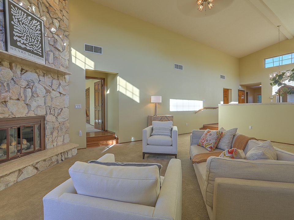 Wonderful opportunity to live in lovely Tanoan! This spacious high-ceilinged home includes an enormous great room with fireplace, a generous primary suite with access to a low-maintenance yard, and two additional bedrooms to make room for everyone. An eat-in kitchen provides a beautiful Sandia Mountain view. This property was lovingly maintained by a long-time owner, and updates include refrigerated air and high- efficiency windows. Incredible opportunity to take these wonderful spaces to the next level. Take a look!